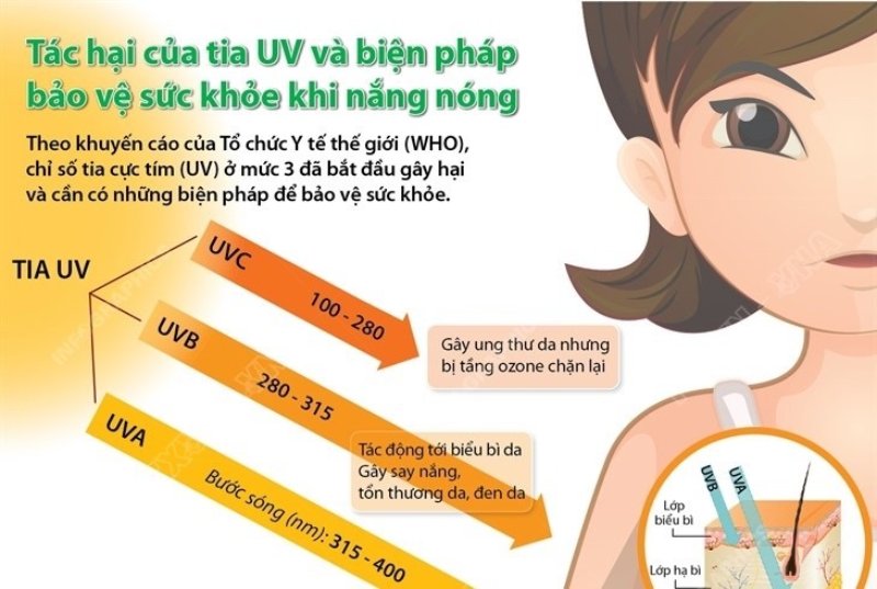 Tia cực tím (UV) không chỉ tác động lên da, gây cháy nắng, nhanh lão hóa, và có nguy cơ ung thư da, mà còn mang đến những hậu quả đáng kể cho mắt và ức chế hệ miễn dịch của cơ thể dựa vào khả năng bức xạ ion hóa.