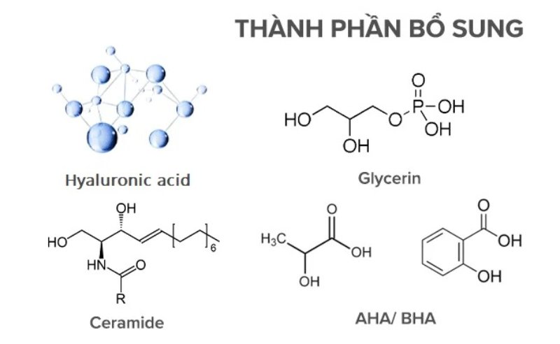 Alpha Hydroxy Acid (AHA): AHA, có khả năng tan trong nước, kích thích sự tái tạo tế bào, giúp da trở nên mềm mại và làm sáng da. Ngăn chặn quá trình lão hóa, giảm nếp nhăn, và làm đều màu da.